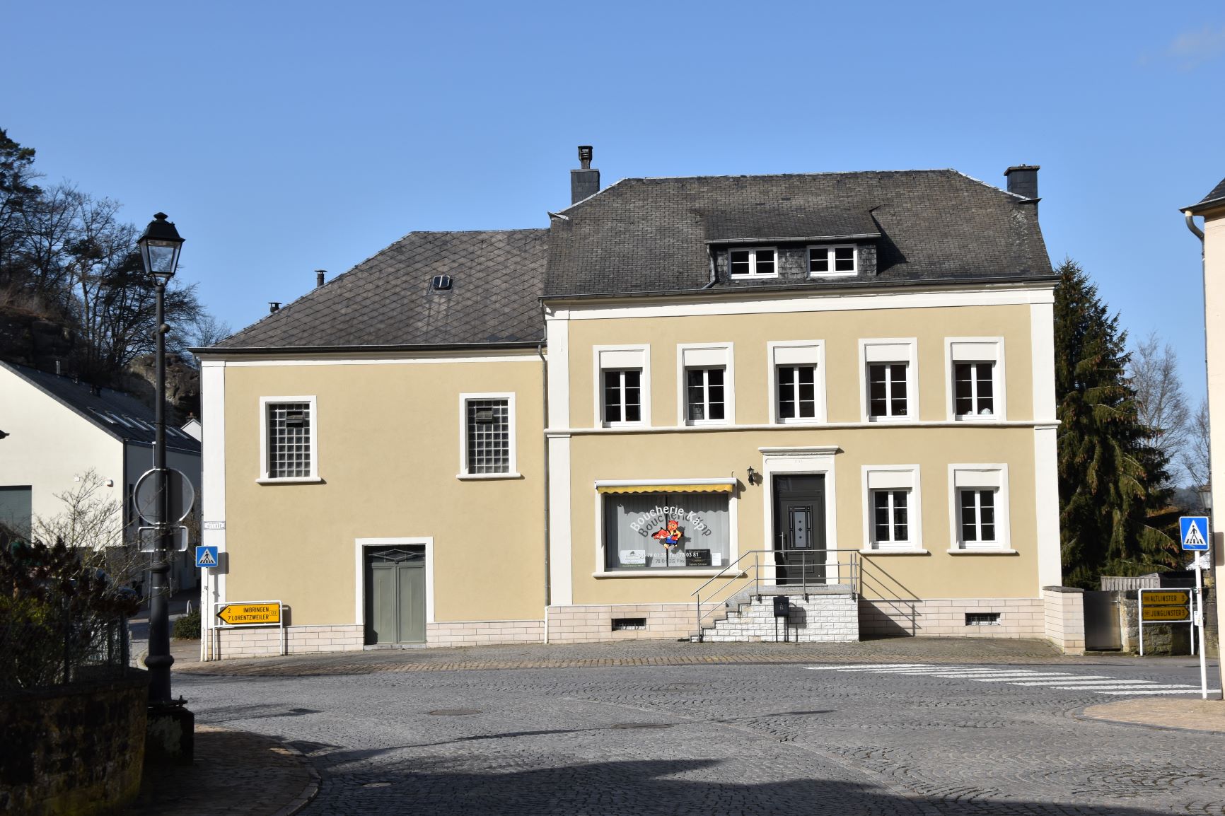 The signposts may be new, but one of these paths has been here for thousands of years: an old Roman “Rennpad” cutting its characteristically arrow-straight north-south axis over the Eechhêlz plateau. We followed it for a while before ducking downhill into the quiet cobbled streets of the village.