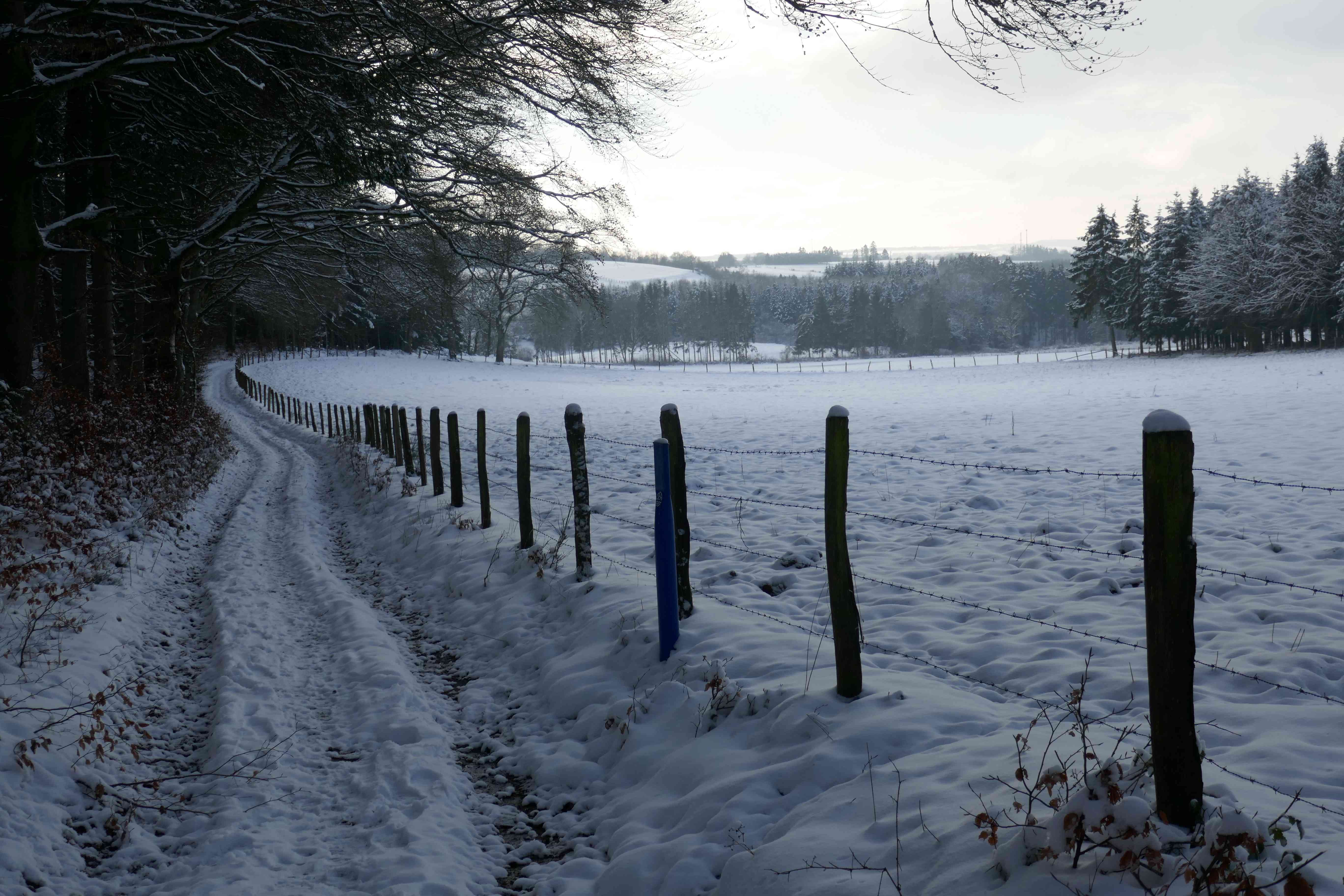 Getting to the Buergplaz needn’t be an adventure – a road called “Op der Burrigplatz” leads out of the village of Huldange directly past this spot (whilst demonstrating yet another alternative spelling) – but we had hiked from the village of Wilwerdange, a few kilometres away. Through subarctic tundra (normally farmland) and the Siberian forest (some woods) we trekked, in a constant state of childish elation at the winter wonderland all around us.