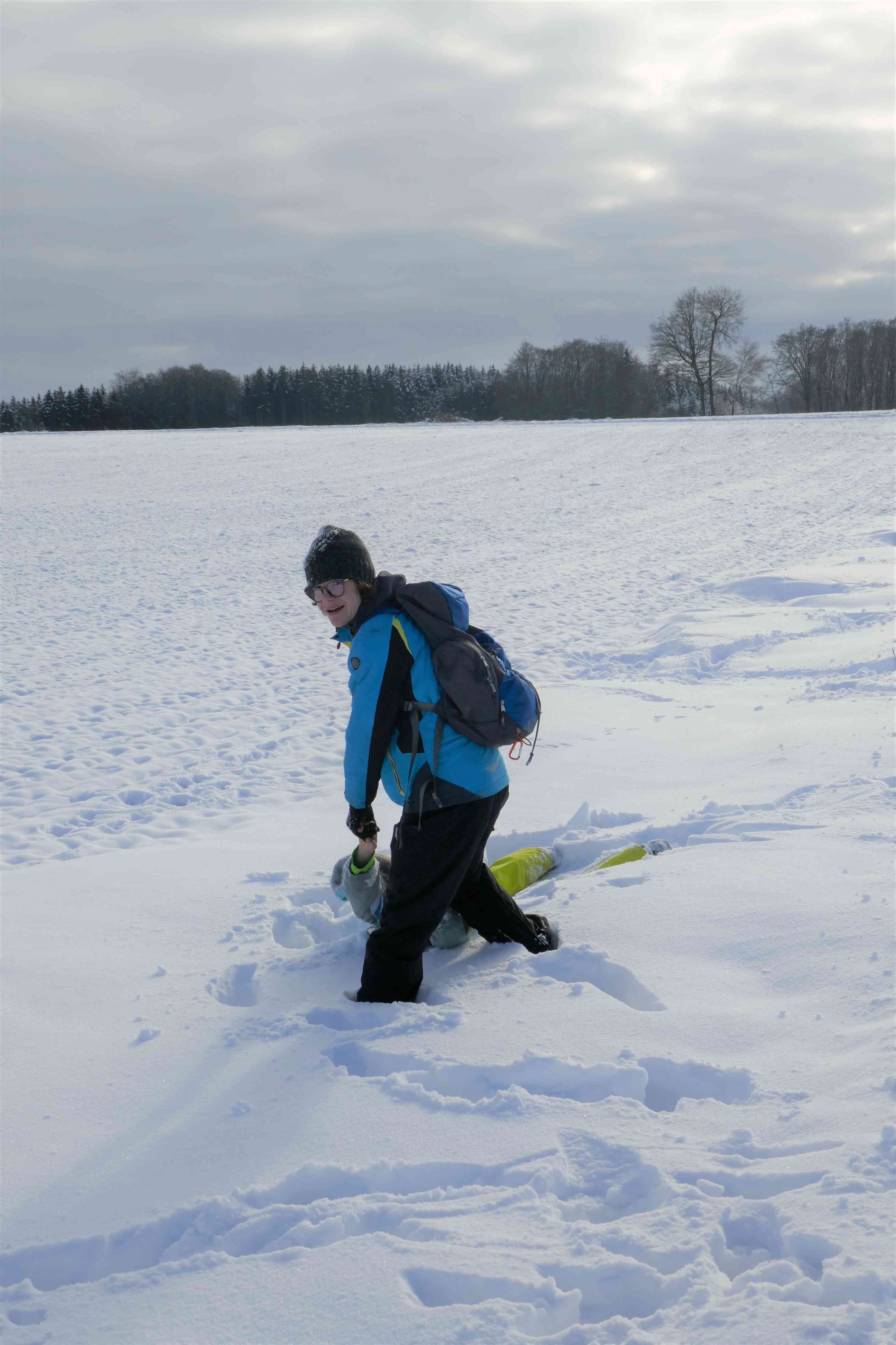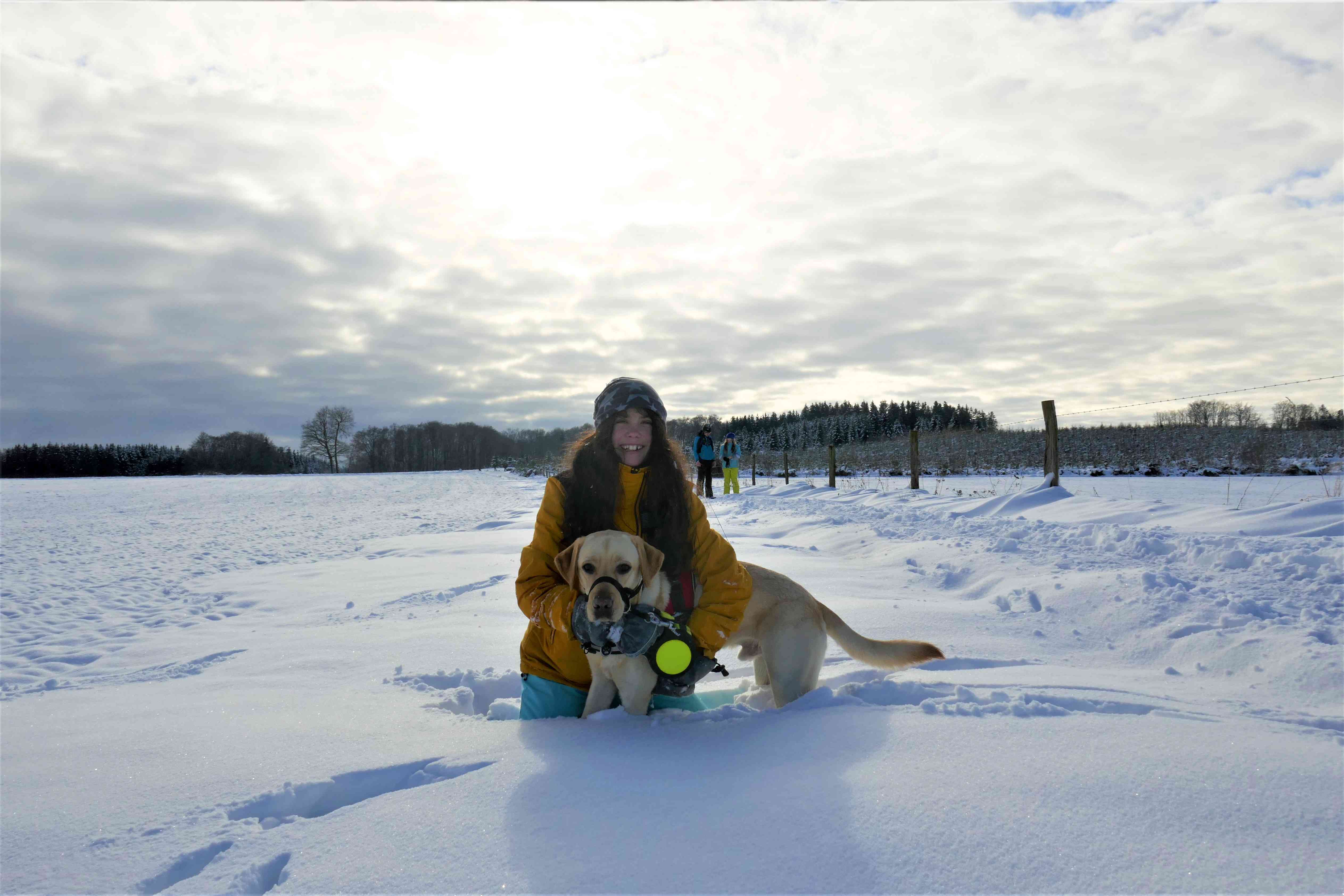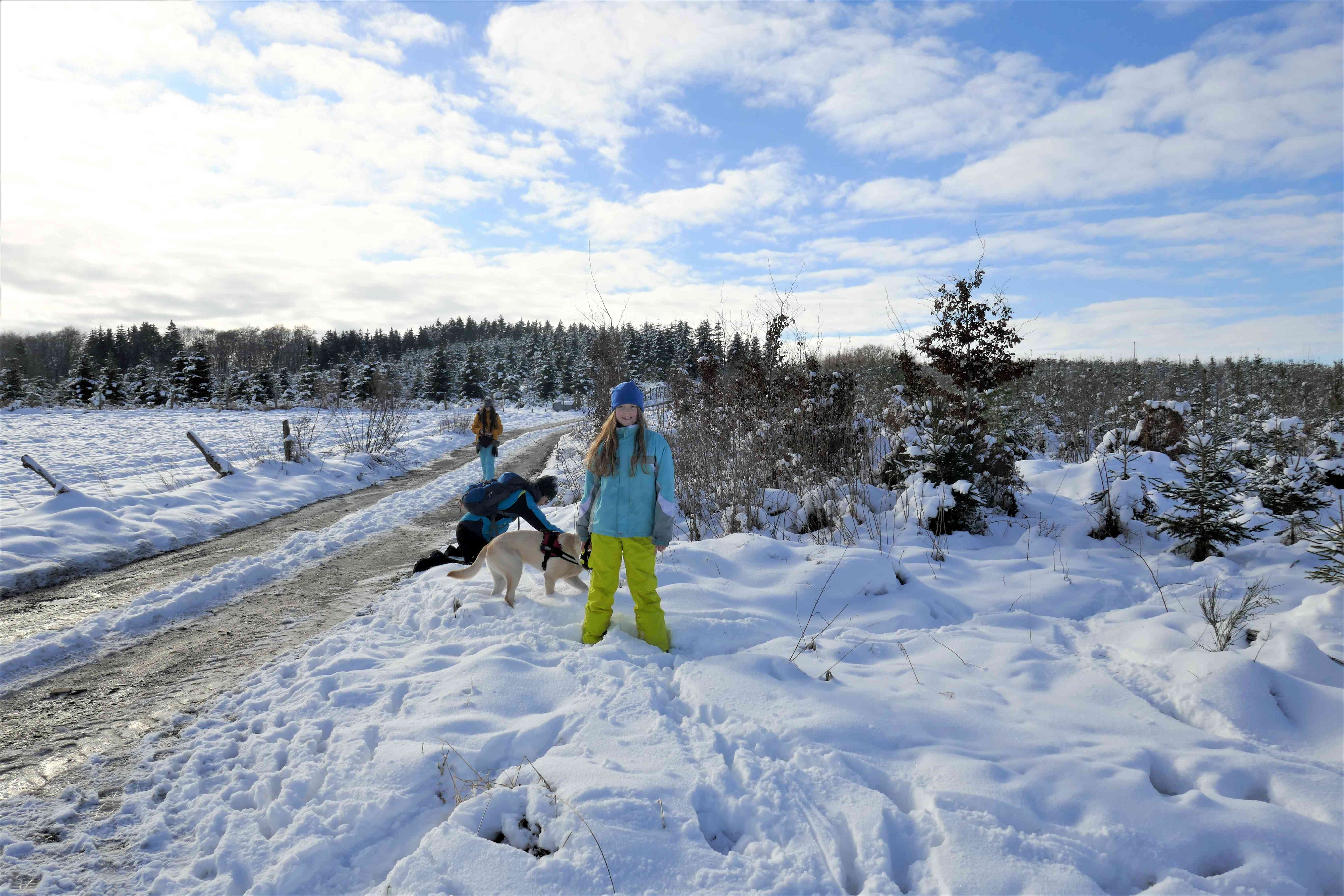 For two kilometres of its 10km length, the “Auto Pedestre Hoffelt” hiking path runs alongside the Belgium-Luxembourg border. Although there is no natural physical feature marking the frontier, the snow had curiously chosen this precise geopolitical line to drift, a welcoming white powderpuff of endless fun for kids and dog alike.