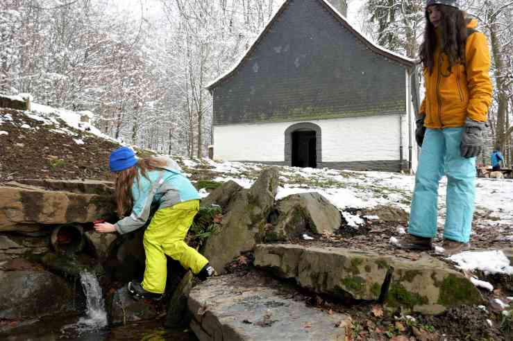 Just a few steps away from its front door gurgles the spring which probably first attracted people to this spot, back in the dark mists of time. Despite everything being deep-frozen all around us, water gushed eagerly out of the ground; it’s easy to see why this could be interpreted as a sign of divine presence. There’s a curious folk tale surrounding the chapel and the spring: