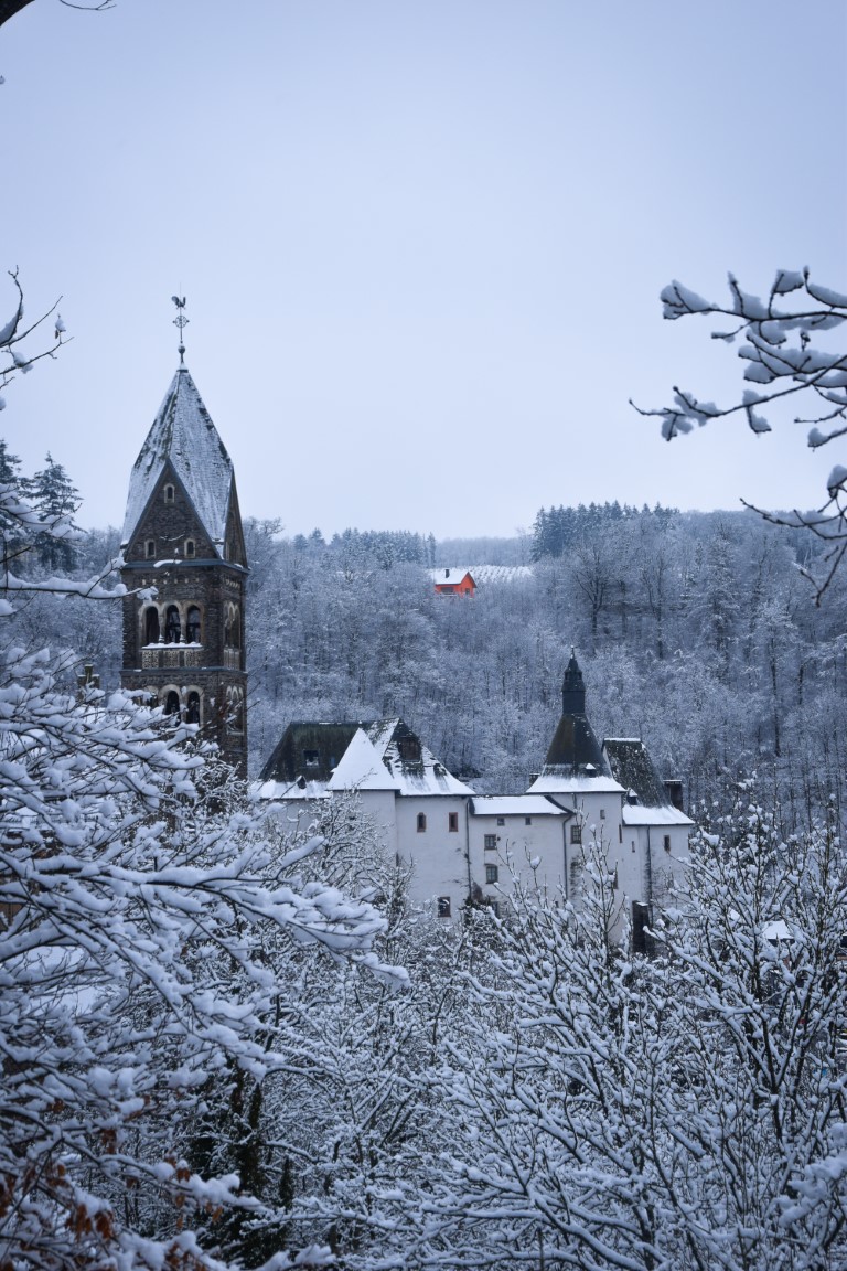The Clervaux Eislek Pad – one of eighteen brand-new “EP” hikes in the region – essentially combines the grandiose monuments of this attractive town with the peaceful wooded hills surrounding it. The first few kilometres are all about the town itself, with views over the castle, the impressive Church of St Cosmos & Damian, the cutesy Loreto Chapel and tantalising glimpses of Clervaux Abbey above the sugar-frosted treetops.