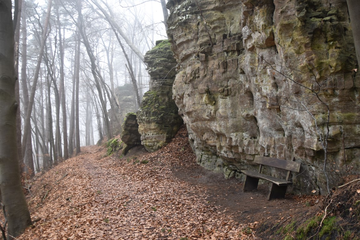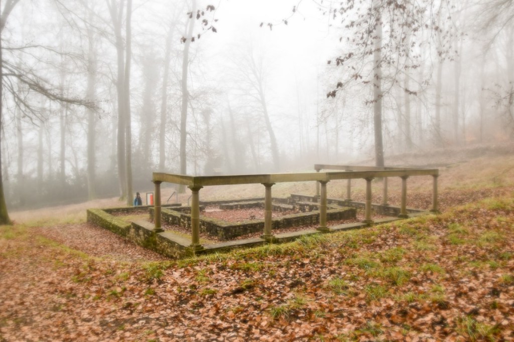 But the trail’s most obviously “Instagrammable” highlight is, of course, the delicious little “pavilion” overlooking the Alzette valley. Although our plan to wait until the fog lifted was a good one in theory, in practice the stale January pea-souper had probably gotten even thicker by the time we reached it. No view for us today then, just an atmospheric murkiness with its own unique beauty. Just a little further on comes the trail’s cultural highlight – a surprisingly substantial Roman site which once consisted of a temple – dedicated to the mysterious local deity “Cerunicus” – and several outlying buildings. Exploring these ruins in the dead calm of a Luxembourg winter’s day was a soul-soothing, spirit-awakening experience: just what was needed after a tough week in the classroom.