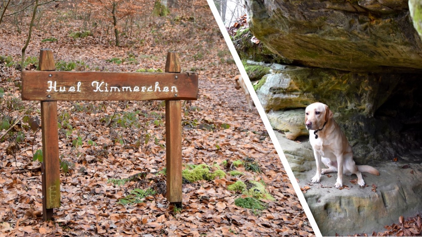 Although it’s mostly a pleasant forest stroll, there are enough points of interest to keep that kilometre count ticking along nicely. Like the “Huel Kimmerchen” for example, a cosy little cave standing sentinel over the valley, and a mini-Mullerthal section skirting some typical sandstone rocks. There are also plenty of benches and picnic tables along the way for those well-earned breaks.
