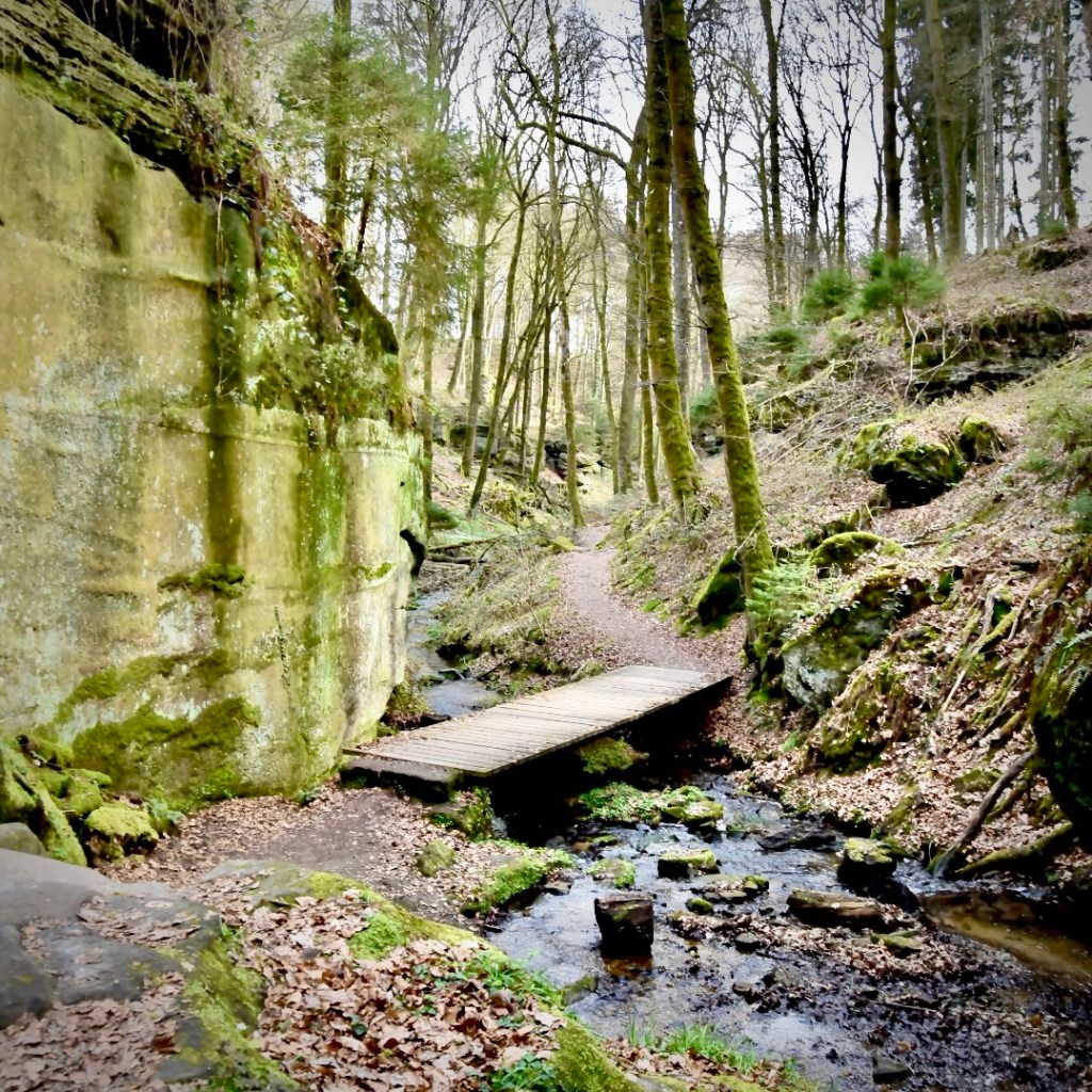 Despite initial appearances, the trail marker for this one is not, as I first believed, a croissant, but a representation of a fossil commonly found in the Mullerthal. And it’s everywhere! Since you can set off in either a clockwise or anti-clockwise direction from the starting point, you can easily have croissant fossil overload and find yourself going round a pretty park in circles until you find your way and finally start heading towards the forest.