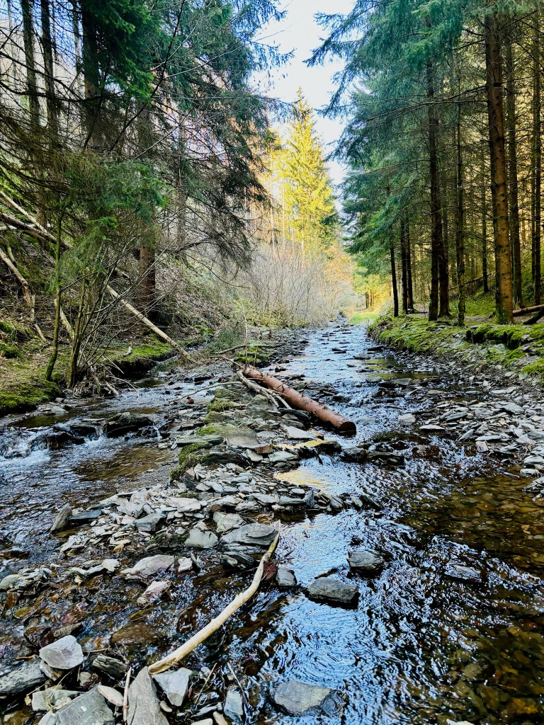 After a few kilometres the hike’s main attraction – the Molberlee – comes into view through the trees like the backbone of a fearsome dragon rising from the valley floor (photo taken in April 2024):