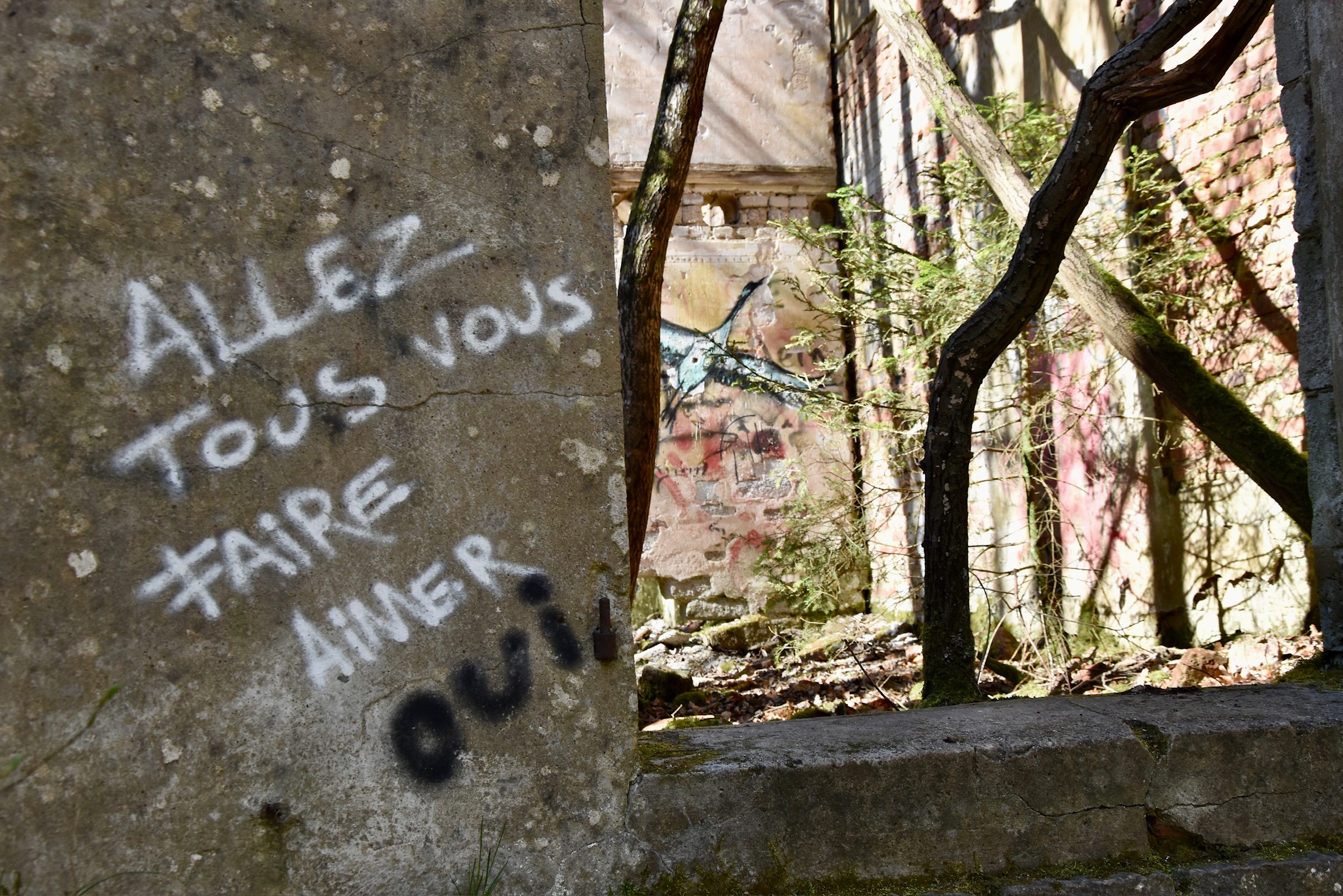 Hike it at any other time of the year and you’ll probably forever associate this “auto-pédestre” with ruins. I mean this in a good way: intermittently scattered throughout the entire length of the hike are edgy, graffiti-strewn abandoned buildings in various states of being reclaimed by nature. It is one of Luxembourg’s great charms that these lost places are not fenced off for safety reasons; you’re generally feel to wander into them and explore. Listen closely enough and you’ll hear the ghosts of the past intertwined with the abundant birdsong.