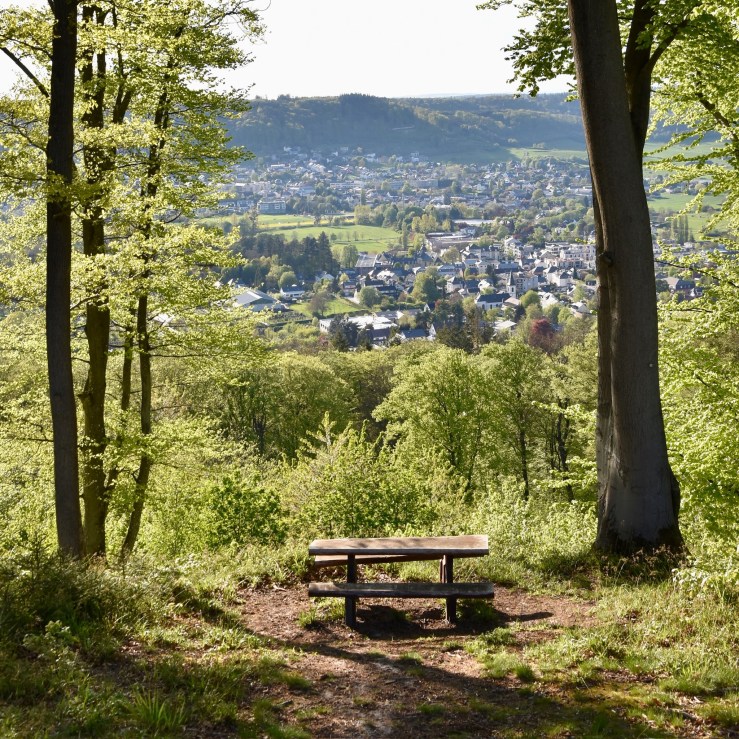 From Well 5 (the deepest and highest), the path veers off into the forest, towards the faint hum of the A7 motorway. After a kilometre or so of walking, the reason for this detour becomes clear: a stunning viewpoint and picnic table overlooking the Alzette valley: