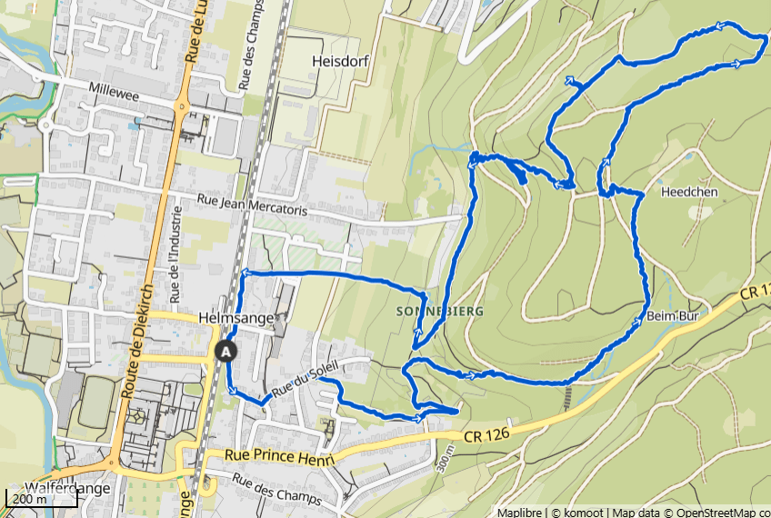 • Start directly from Quai 2 of Walferdange Train Station. Parking available.