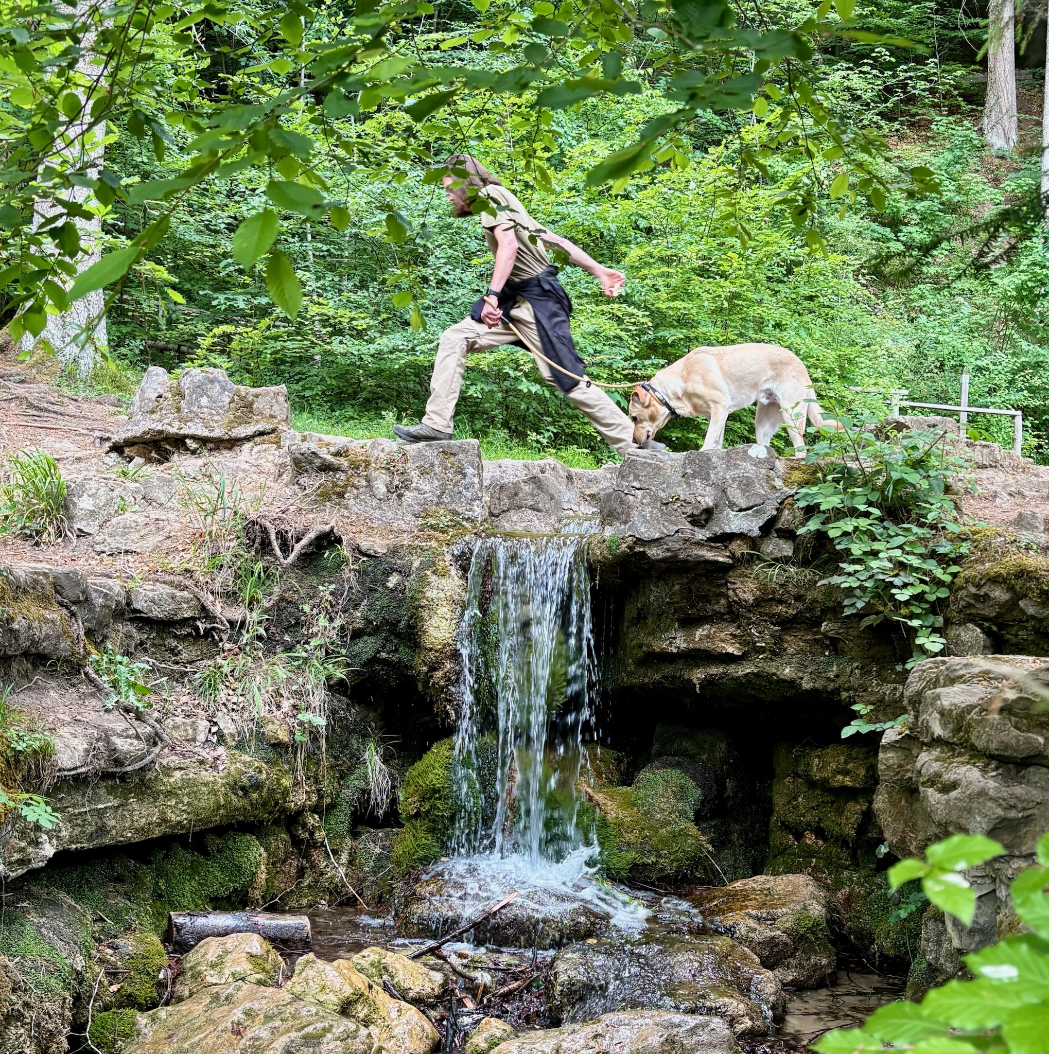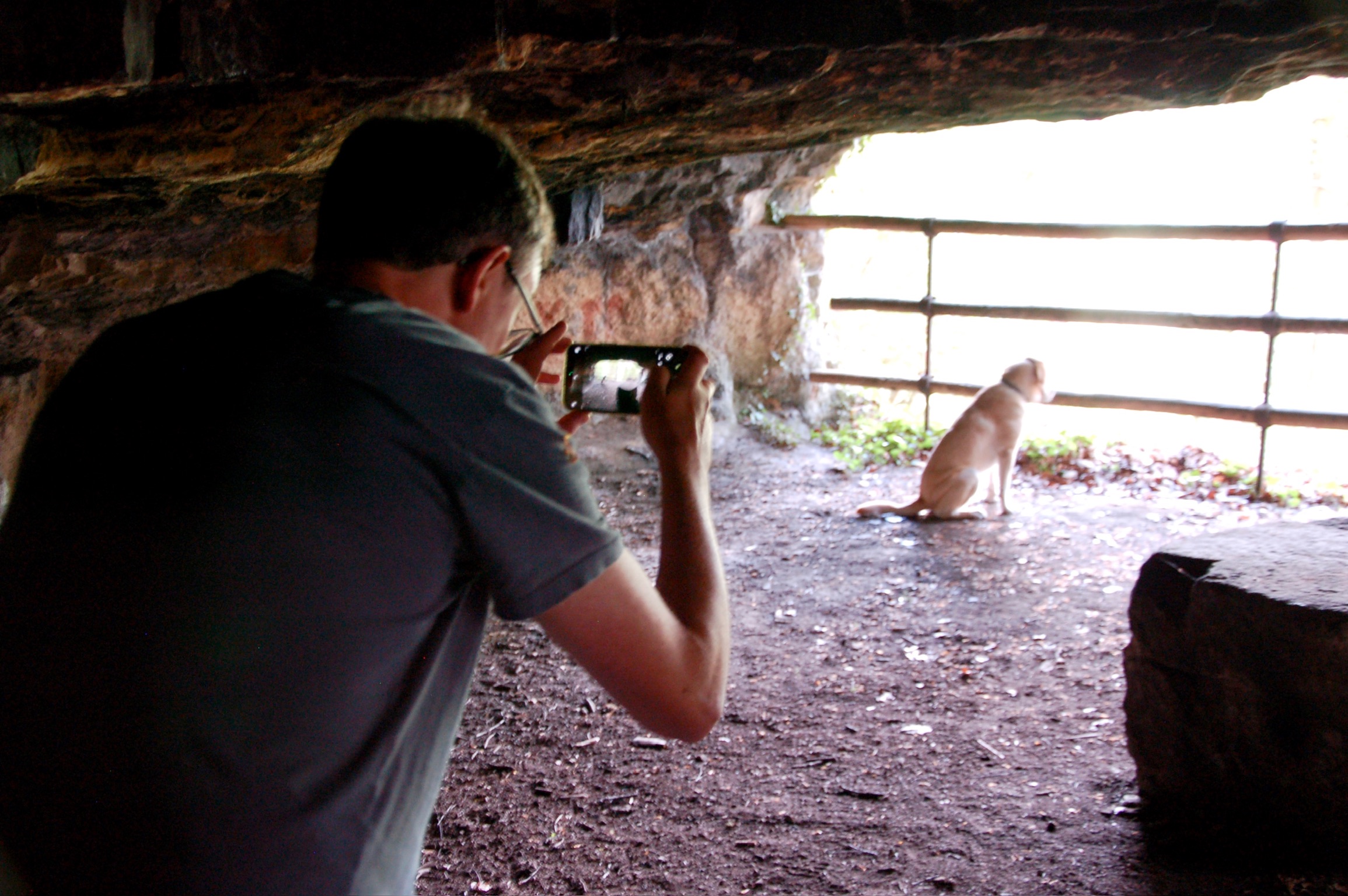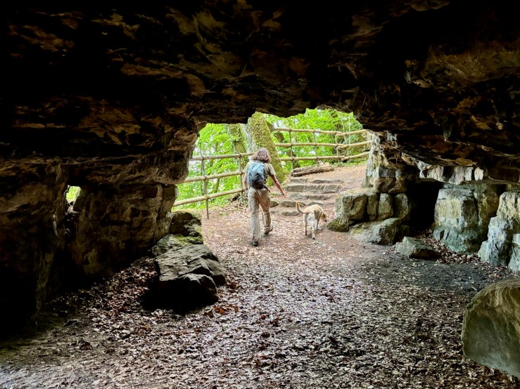 From the castle viewpoint, peek down towards your left and you can see the entrance to the Huellee cave. Assuming that there is no new-age ceremony going on in here, it’s a wonderful spot to explore and admire the views over the Mamer valley, for humans and four-legged friends alike.