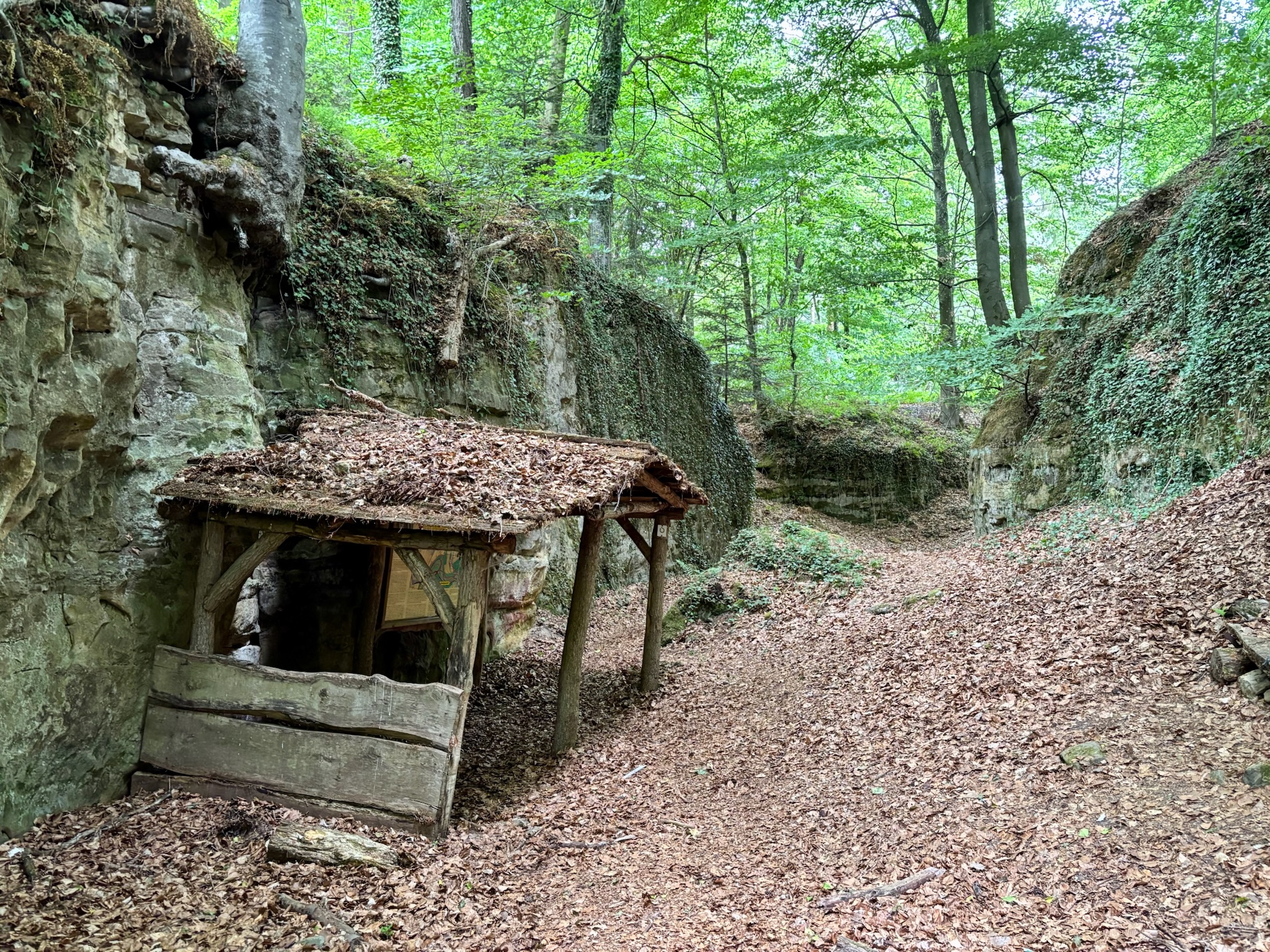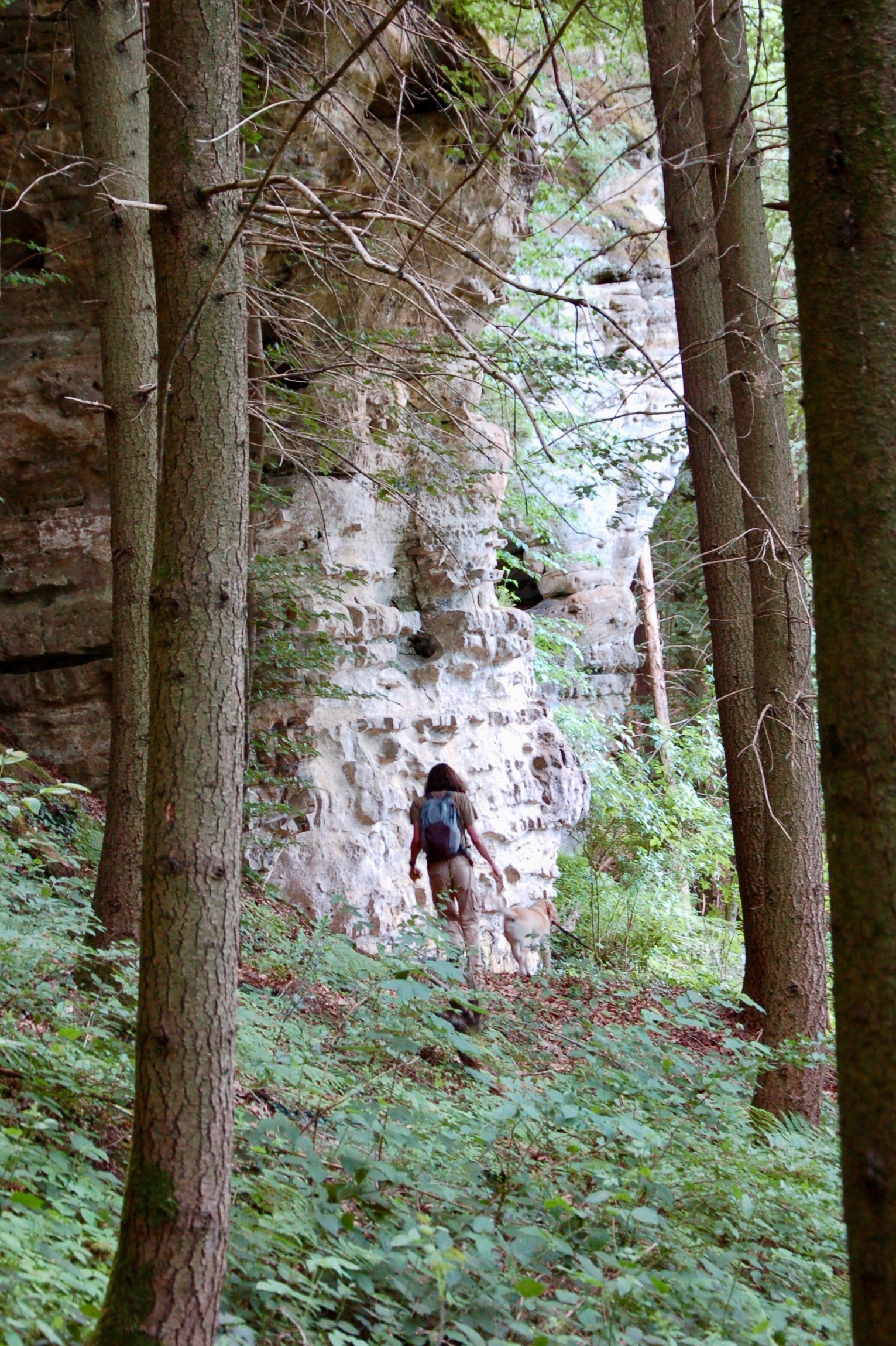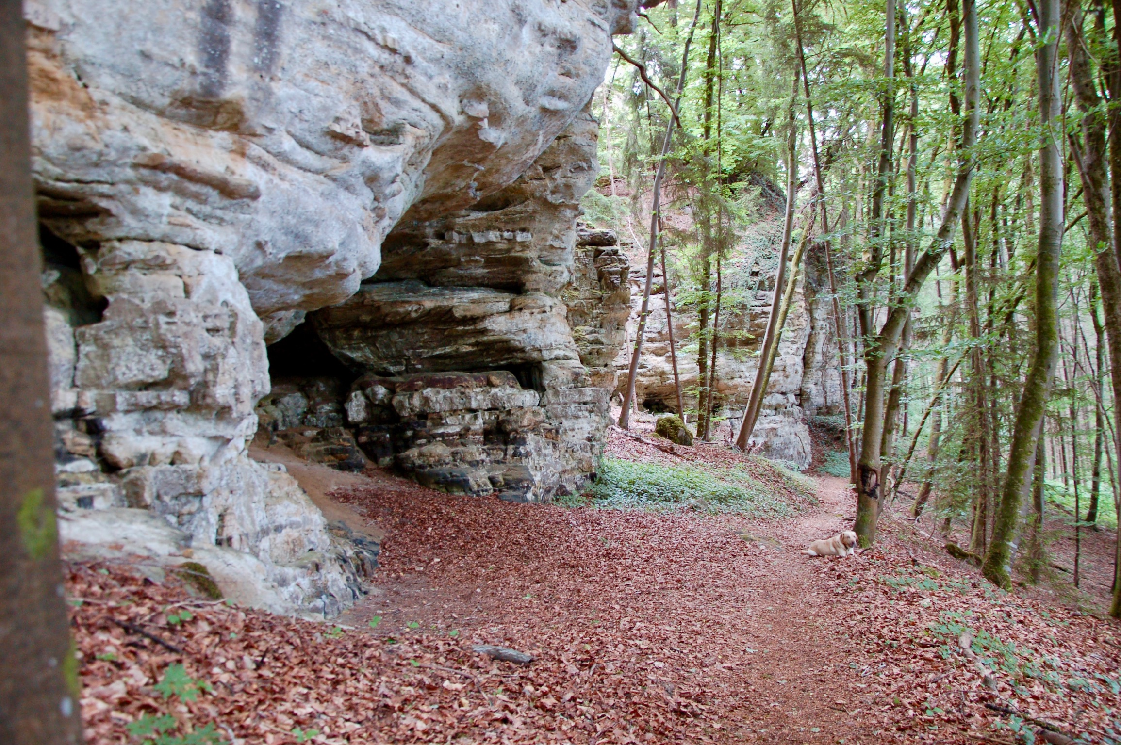 What comes after the Huellee is, without doubt, one of the most beautiful – and most frustrating – sections of the trail. Beautiful because it simply is: a rollercoaster path weaving around the base of towering sandstone cliffs, dotted with caves (some of them explorable), and winding through a cathedral of beech trees.
