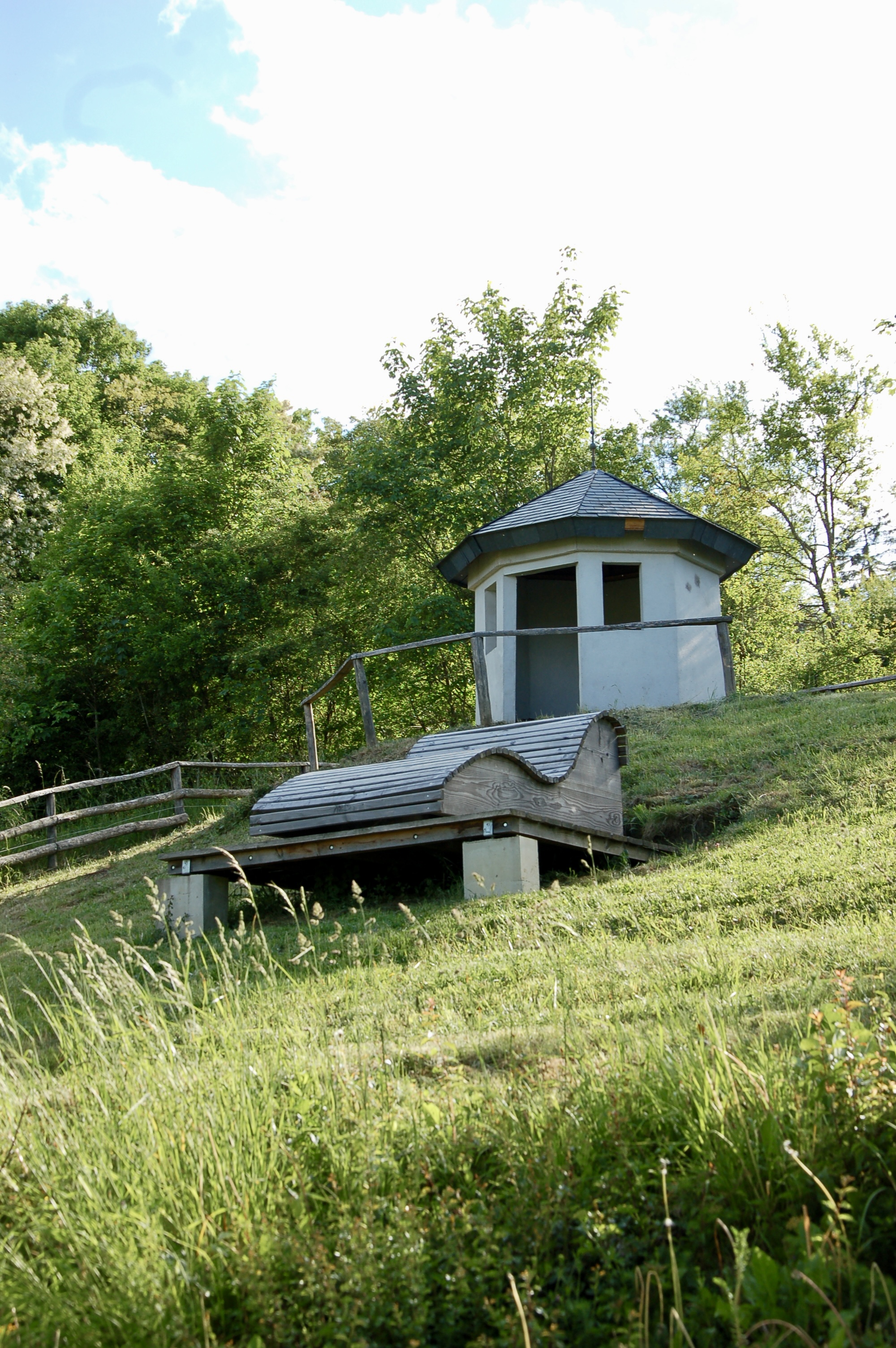 It is advisable to rest at the Hunnebur for a while, not only to admire its serene beauty, but also to replenish your energy for the steep climb up towards the Priedigstull viewpoint (a relative disappointment: the views over the Eisch valley are obscured by trees) and across the thickly-forested Miescherwald plateau towards the Mamerleeën caves themselves.