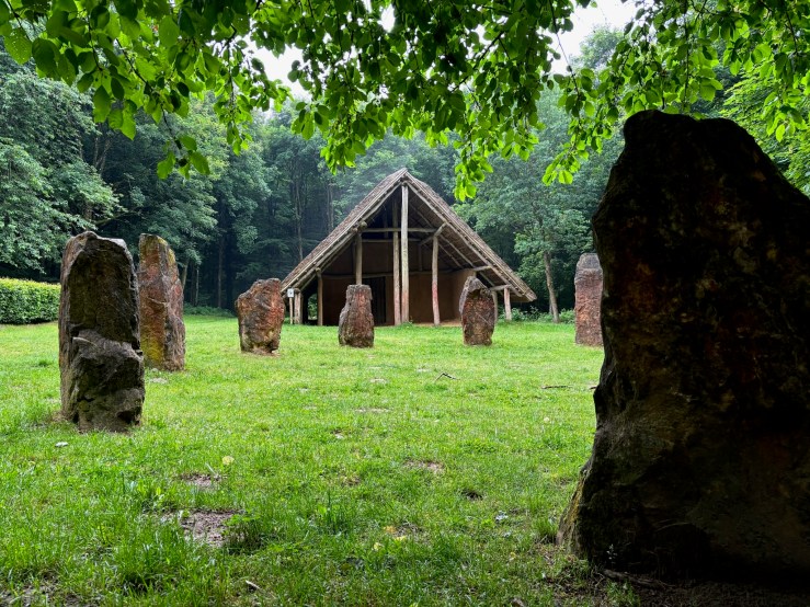 We set off. Within minutes, the first landmark emerged from the dripping green: a reconstructed Neolithic house with great standing stones arranged in front of it, like silent watchers. It looked almost like we’d accidentally stepped into a film set, but it was simply the start of a brand-new hiking trail: the Guttland Trail Fautelfiels.