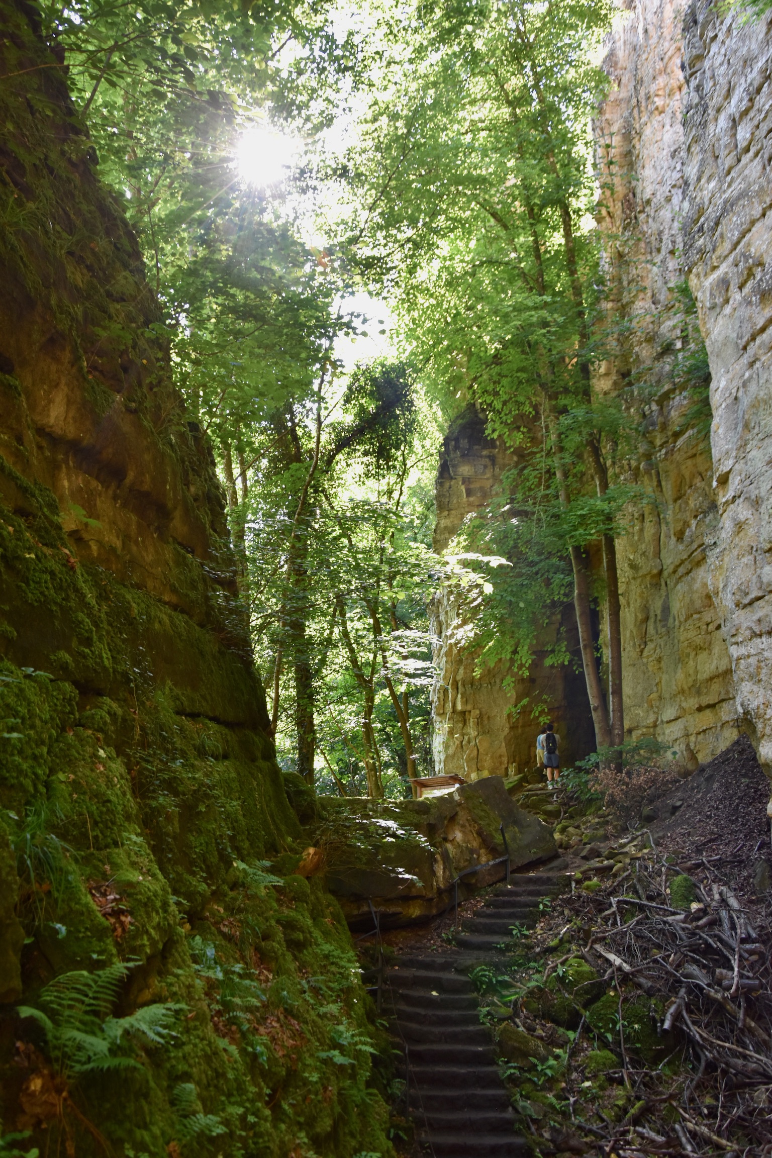 Yes, you read that right: mining scars. “Mullerthal” translates as “Millers’ Valley”, and the Hohllay has been almost entirely artificially created by the quarrying of millstones, clefted from the rock here since the middle ages (and perhaps even from Roman times). But the old quarriers appear to have been artists as well as workmen: what they left behind them is undoubtedly extraordinarily beautiful.