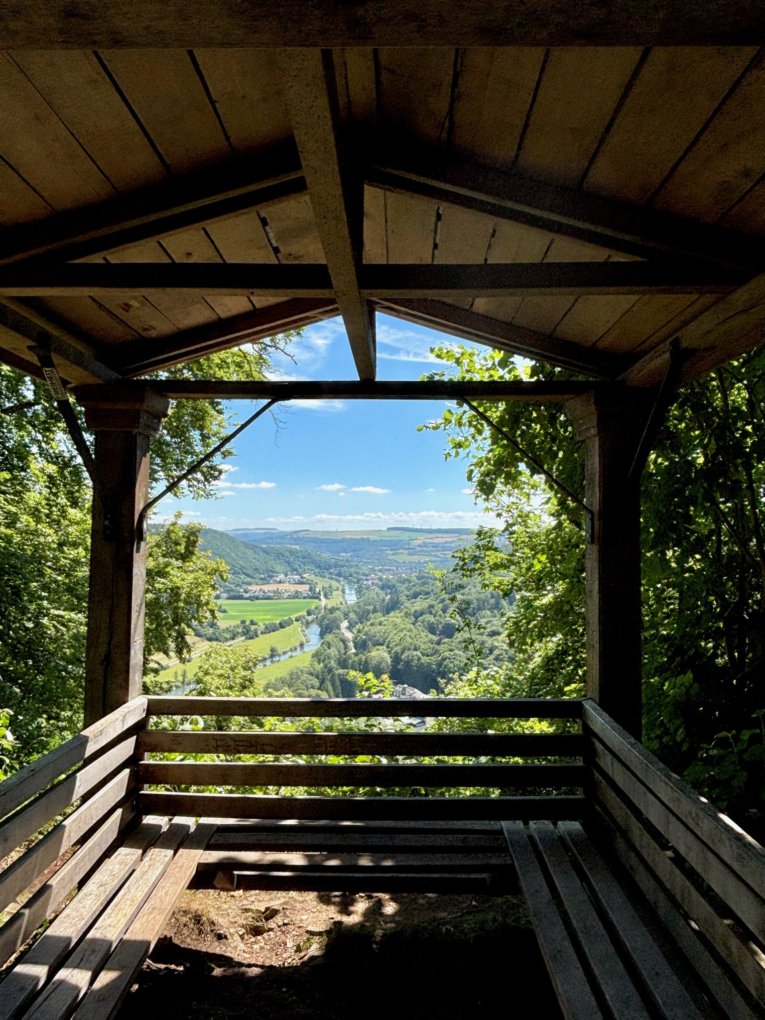 There is no messing about with suburbs on this hike: once the trail reaches the end of Echternach’s main street, it almost immediately starts to rise up on crooked, rough cobbles through scrub-like forest. You get the feeling that people have trodden this path for hundreds of years and it’s a surprisingly tough climb. But you soon get rewarded for your efforts with the first viewpoint of the day at the Trooskneppchen.