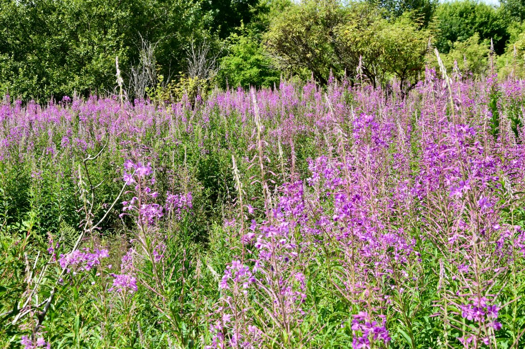 Two main things stand out in the first half of the walk. First, the trail passes through local wetland (the fenn or venn in the name, like “fen” in English) via a series of picturesque wooden boardwalks. Second – and surely related – there’s an overwhelming sense of being close to nature: a fox darting across the path in a rusty blur, the constant merry buzzing of bees, fat ripening raspberries begging to be picked, a constellation of butterflies, and the pink sea of fireweed in full bloom. Yes, walking this trail in midsummer is a joy.