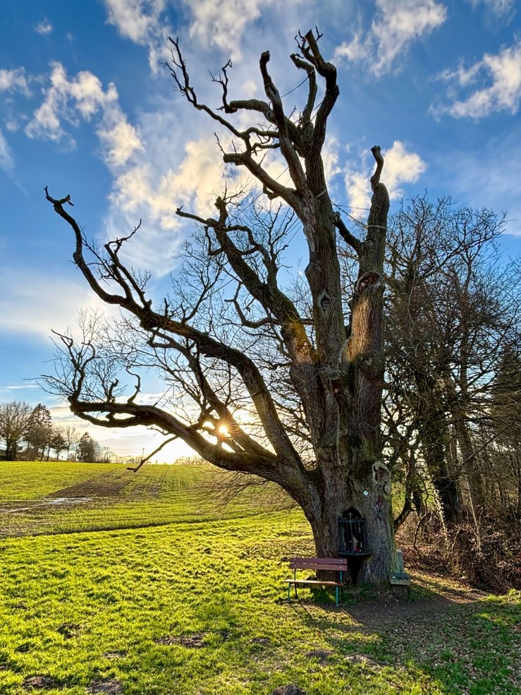This is the Heeschbrecher Bildchen, sometimes referred to as the “Millennial Oak”, although most estimates place its age closer to 500 years than 1,000. It is certainly an impressive specimen but, like many venerable giants, is now showing its age. The detour might have felt entirely justified a century or two ago, when the oak was in its magnificent prime. Today, some hikers may quietly reflect on the effort-to-reward ratio.