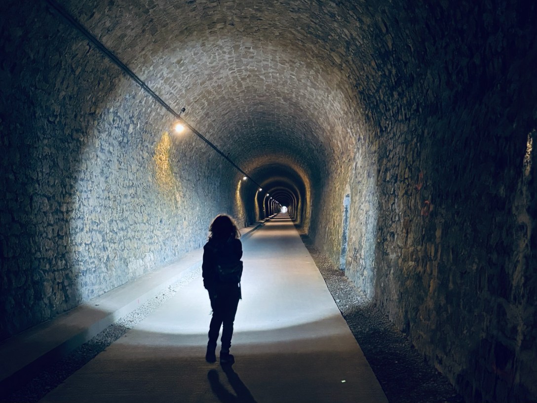 After decades of silence, the old railway line was gradually reclaimed as a walking and cycling route. As far as my research suggests, there was no grand reopening; the tunnel simply re-emerged organically over time as part of a growing network of local paths. Lighting and asphalt were added later, making it easy to walk or cycle through while preserving its cold, echoing atmosphere.